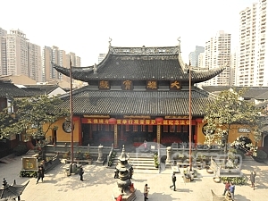 1882年の創建。普陀山の僧侶慧根(えこん)がビルマから白い玉石から作られた5体の玉仏を持ち帰る途中、2体を上海に残したのがはじまりです。現在もこの玉仏坐像、玉仏臥像の2体は境内に祀られ、拝むことができます。